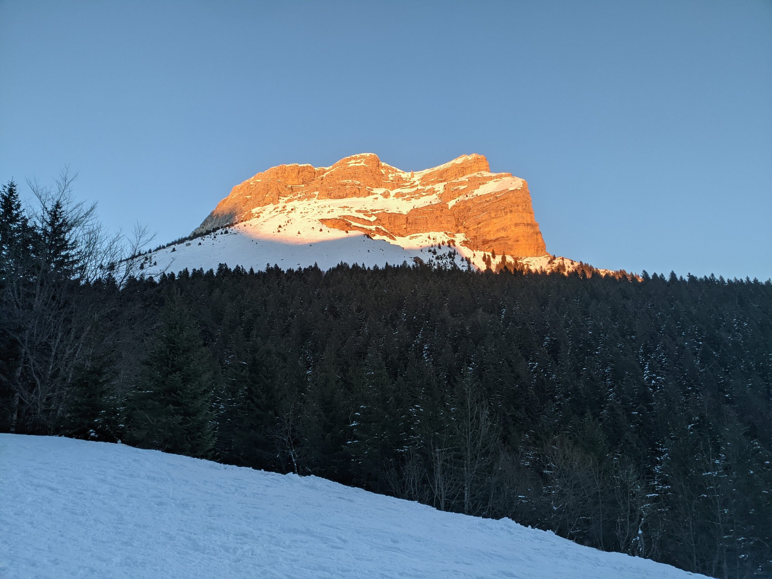 L’hiver, la route du col du Coq est fermée à partir de la côte 1217 ; mais le Pravouta, lui, est toujours aussi haut : 1760 mètres. C’est donc une jolie randonnée de 550 mètres de dénivelée qui nous attend.